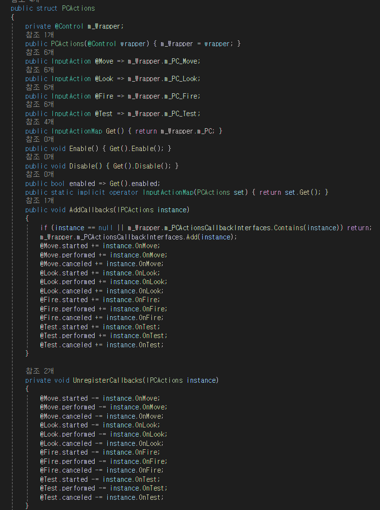 위와 같이 C#으로 Input Actions에 대한 내용과 기능을 구현해냅니다.