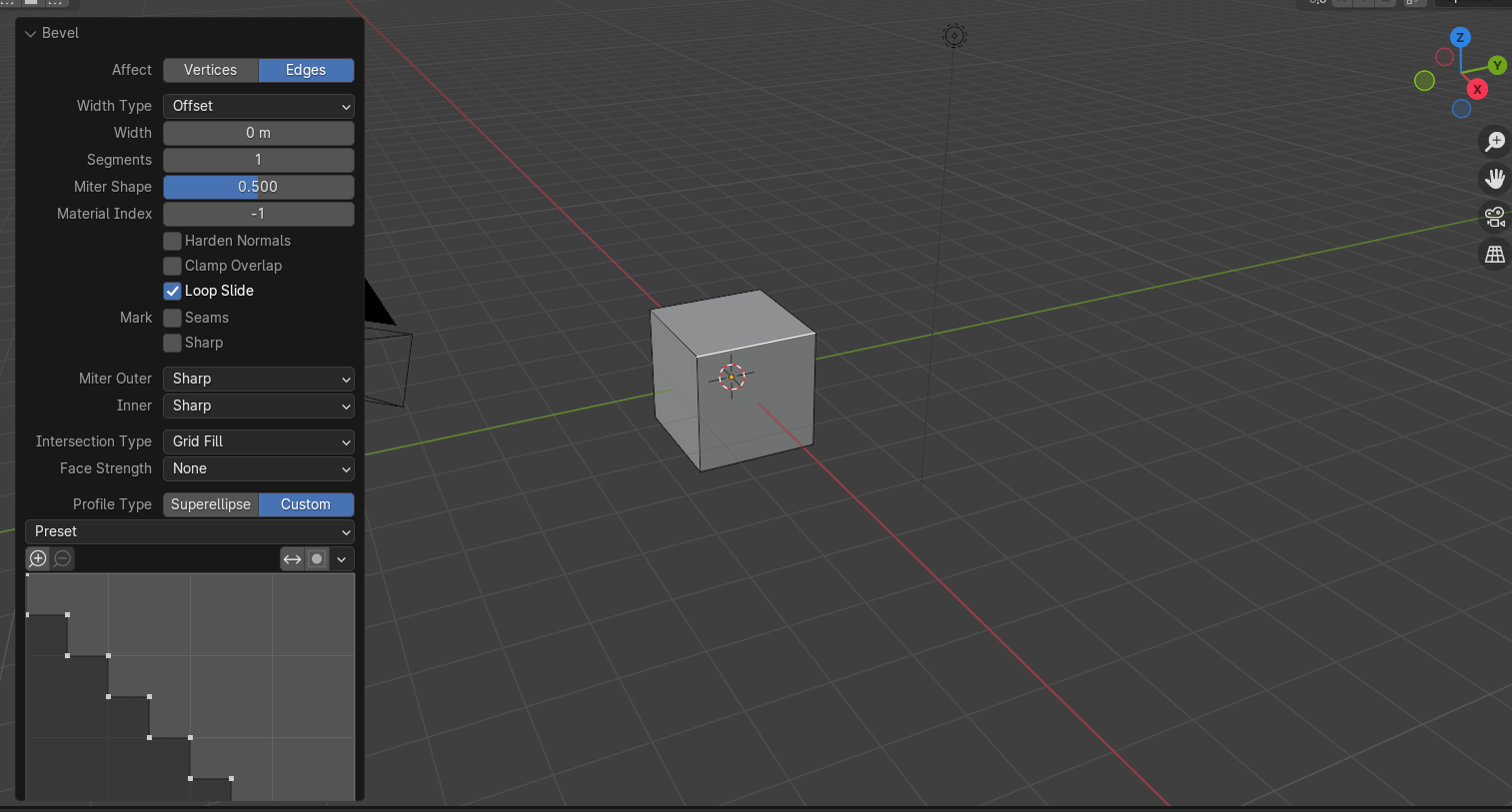 그 다음 Bevel 설정창을 열어서 Profile Type을 Custom으로 변경