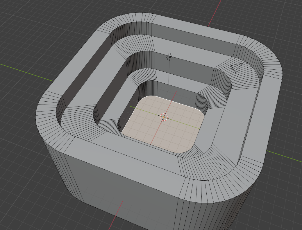 그 다음 Inset과 Extrude를 활용하여 위 와 같은 모형을 만들어줍니다.