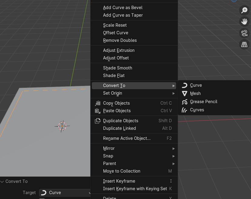 Object 모드에서 우클릭 -> Convert To -> Curve로 변경해 줍니다.