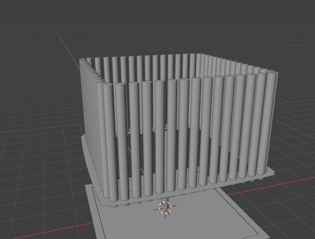 5. Shift + A를 눌러서 실린더를 생성해준 후 쇠창살처럼 모양을 잡아줍니다.