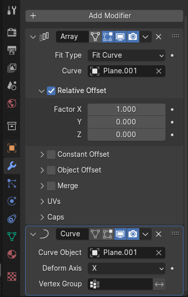7. Plane에 Modifier Array와 Curve를 추가합니다.