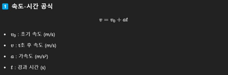 그렇기에 3번 공식에서 V는 최종 목적지(변위)의 속도이기에 V에 0을 대입할 수 있습니다.