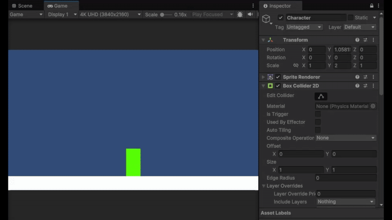 캐릭터의 Y Scale을 1만큼 증가시키고 점프하면,