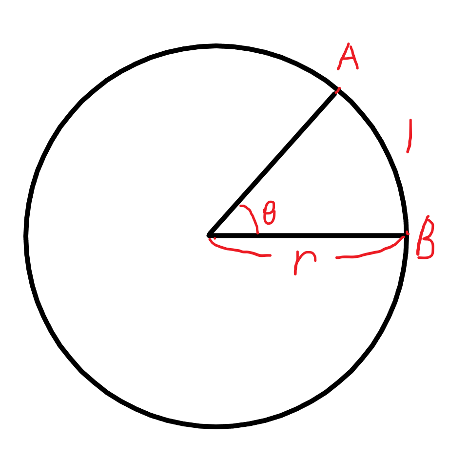 이 때 호의 길이는 θ의 크기에 정비례하기에,