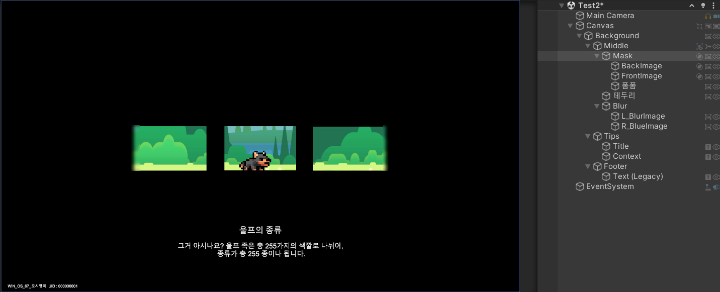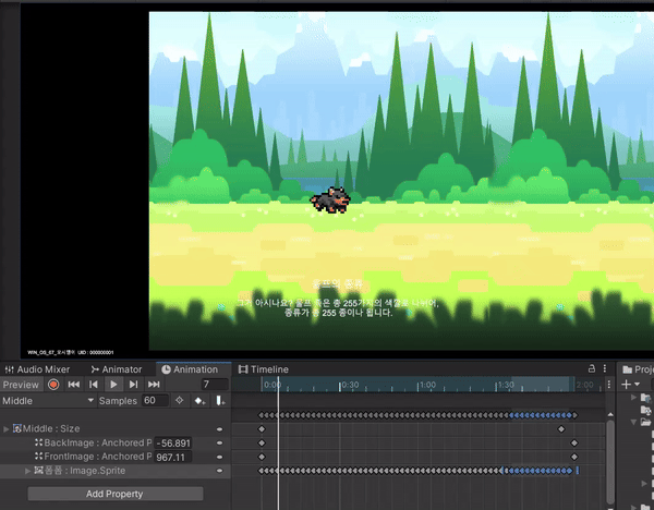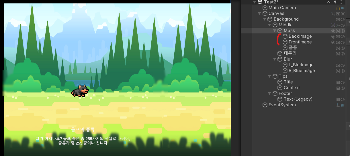 1. BackImage와 FrontImage를 왼쪽으로 이동시켜서 Brown Wolf가 달리는 것처럼 만들어줍니다.