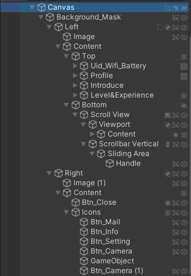 ㄴ Profile ( 빈 오브젝트, 프로필 정보를 담고 용도입니다. Horizontal Layout )